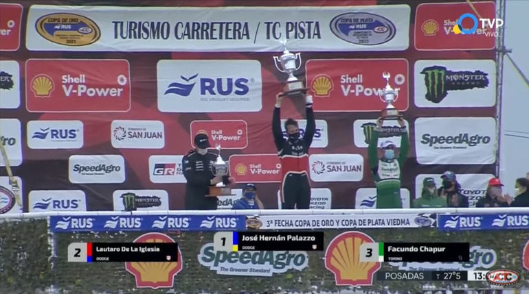 Antes de subir al segundo lugar del podio, De la Iglesia explicó la maniobra en la que Palazzo logró superarlo. "Saliendo de la curva dos tenía poca tracción y no pude evitar el sobrepaso. Corrimos a fondo, felicito a Hernán", expresó.