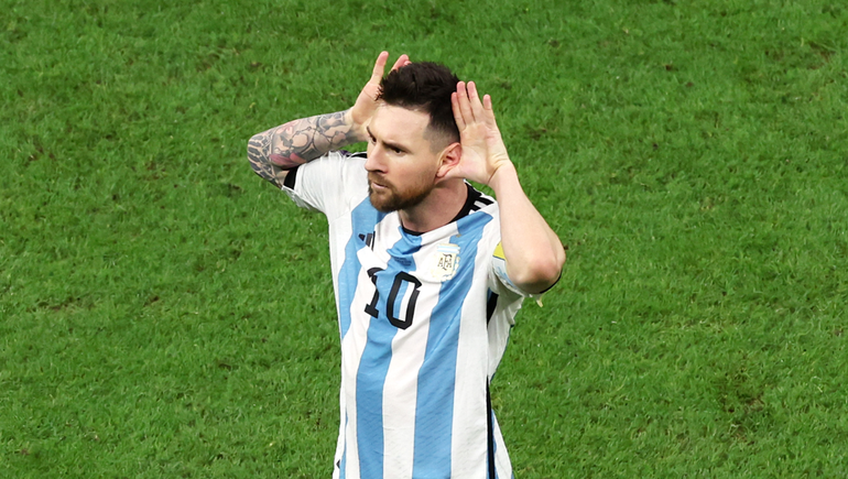 Iban 74 minutos y Messi se hizo cargo de la ejecución. El capitán argentino tomó una corta carrera y con un disparo ajustado al ángulo estiró la ventaja. En el festejo, La Pulga hizo el Topo Gigio.