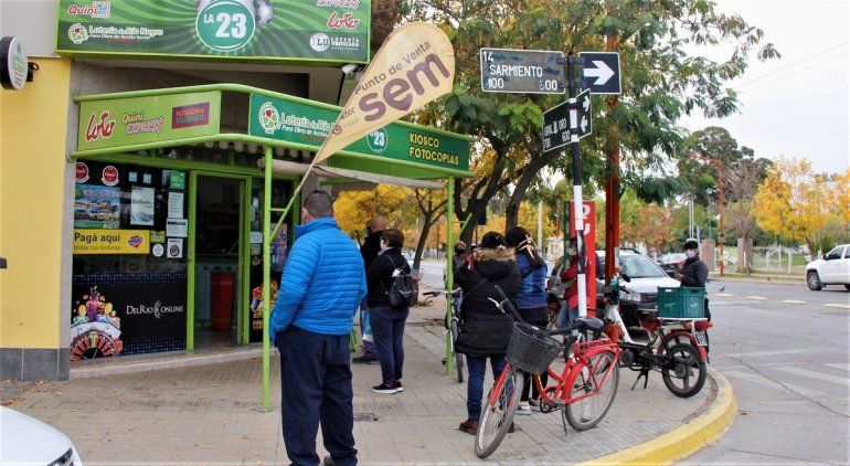 En efecto, esta mañana llamó la atención la cantidad de gente que hacía cola pacientemente en una boca de pago rápido ubicada en las calles Mengelle y 9 de Julio, con barbijos y el celular en mano para matar el tiempo de espera, todos apostados sobre la vereda. La misma postal se observó también en Sarmiento y Fenández Oro.
