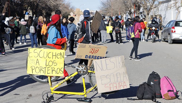 Los jóvenes se concentraron poco antes de las 10 en la plaza San Martín, frente al establecimiento, y de allí caminaban hasta la sede educativa.