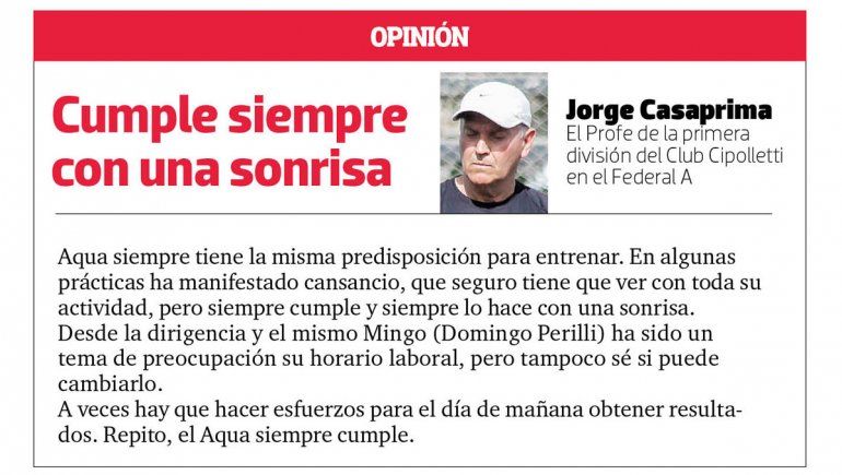 Víctor Villablanca, ex árbitro e hincha de Cipo, es su jefe. Lo comprende a la perfección y le facilita las cosas. "Pelé (apodo popular del responsable del sector) me ha ayudado. Si no fuera por él... Durante el torneo, me manda a barrer y cuando estoy de vacaciones en el club, como ahora, al camión. Sabe mucho de fútbol y no le tengo que explicar nada, se da cuenta de todo", halagó el empleado que desde las 23 recorre el barrio Manzanar, Santa Clara, Belgrano y la zona de la terminal. "Si la gente quiere ayudarnos, que convide agua fría a los chicos de la basura", fue el pedido del goleador.
