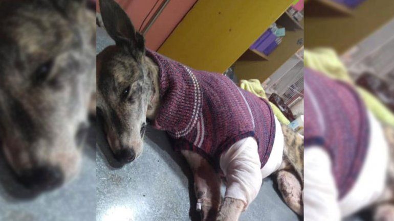Al mismo tiempo, Marini señaló que hoy el gran riesgo para la galga es que le de una sepsis. “El riesgo que hoy corre es que le agarré una sepsis, que es que bacterias pasen a la sangre. Hoy está con tres antibióticos por intravenosa. También le hicimos una transfusión de sangre porque ella perdió mucha. Es que son heridas parecidas a las de las quemaduras y por allí se pierde mucho líquido, plasma y proteína. Por eso es que está con suero y más adelante le tendremos que hacer transfusiones de plasma”.