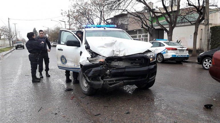 Según se conoció, una camioneta policial que circulaba por calle Venezuela hacia Naciones Unidas, a toda velocidad, impactó a una Renault kangoo verde en la esquina del hospital.