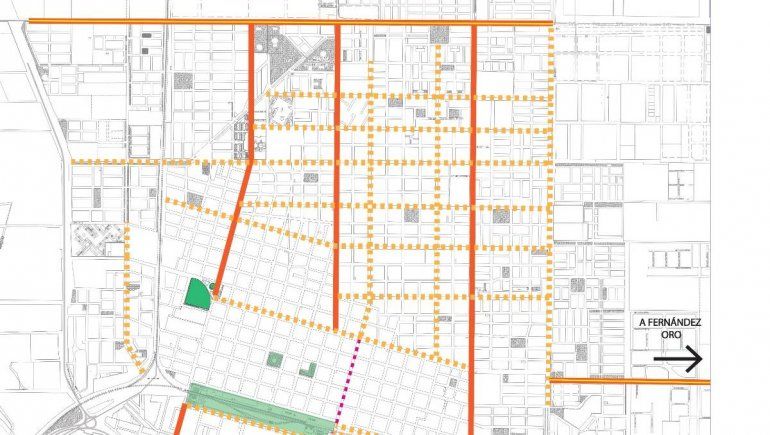 La ciudad tiene calles troncales y subtroncales que forman una trama de diversas jerarquías y conexiones. El proyecto propone resaltar los ejes principales Norte-Sur y Este-Oeste de la ciudad a partir de un mayor nivel de iluminación y reforzar el nivel de iluminación de las calles secundarias.
