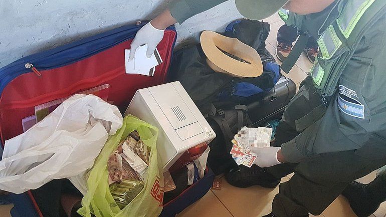 El hombre tenía en los bolsos una impresora de tarjetas magnéticas y distintos elementos que se utilizan para cometer estafas. Transportaba tres equipajes con dinero en efectivo, moneda extranjera, pasaportes de distintas nacionalidades, 600 tarjetas magnéticas y elementos para la falsificación de los plásticos. Cuando lo descubrieron intentó sobornar a los uniformados por lo que además de los delitos de estafa y falsificación se lo imputaría por cohecho.