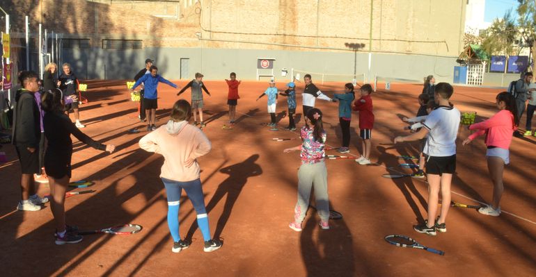 Durante este fin de semana, Oscar “Cacho” Coria brinda una clínica de tenis en el Club Cipolletti, en la que participan jugadores y jugadoras de entre 10 y 17 años y adultos.