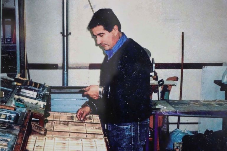 Aprendió el oficio cuando se empleaba la técnica de la tipografía, labor artesanal en la que se debía compaginar los tipos metálicos, letra por letra, números y símbolos, para luego, mediante un proceso con calor y una pasta especial, estampar con una prensa una plancha de goma donde quedaría impregnada la leyenda buscada.