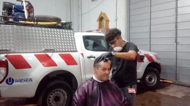 Cipoleño le cortó el pelo gratis a bomberos de la ciudad