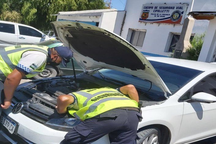 Durante un control vehicular que realizó personal del Cuerpo de Seguridad de Cipolletti, los efectivos advirtieron que un auto se trasladaba con chapas patentes aparentemente apócrifas, motivo por el cual fue detenido. El operativo se llevó a cabo este domingo, sobre Ruta Provincial N°65, frente a la vieja estación del tren que pasa por la localidad de Fernández Oro, indicaron fuentes policiales.