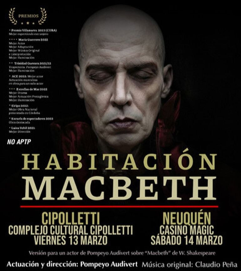 La agenda cultural del viernes tendrá como gran protagonista al teatro nacional con la llegada de “Habitación Macbeth”, una de las obras más premiadas de la escena argentina contemporánea. La función se realizará a las 21 horas en el Complejo Cultural Cipolletti, con entradas a $40 mil.