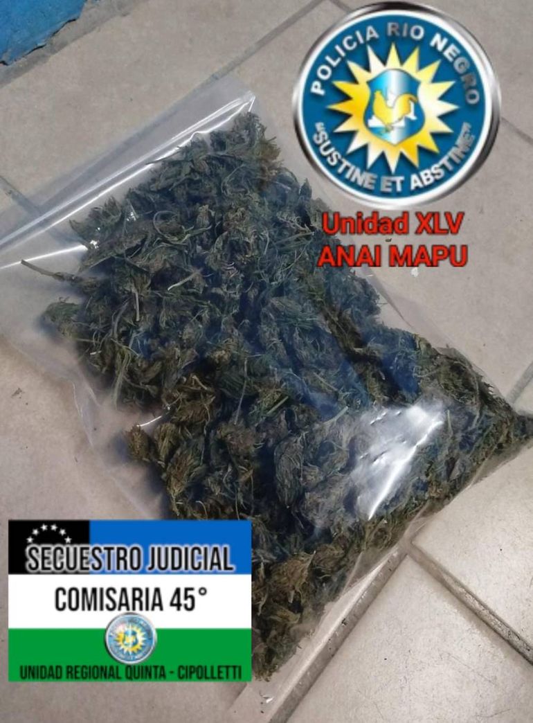 Personal de la Comisaría 45° de Cipolletti detuvo el viernes por la noche en el barrio Anahí Mapu a un joven tras ser hallado en actitud sospechosa y en posesión de estupefacientes.