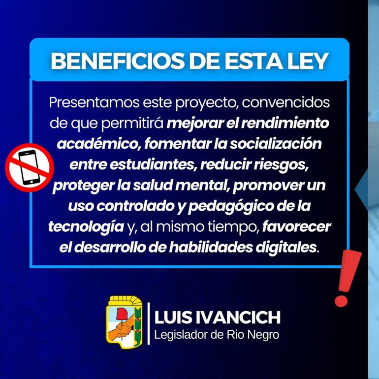 El tratamiento de este pionero proyecto de ley será este lunes 18 a partir de las 13 horas en la Comisión Cultura, Educación y Comunicación Social de la Legislatura de Río Negro. Su eventual aprobación permitirá regular su uso, fortalecer la concentración en las aulas y mejorar el rendimiento académico.