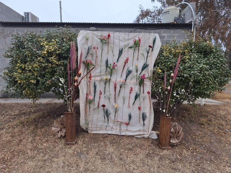 “En verdad hicimos el espacio de las fotos, el telón de flores colgantes con floreritos, también la decoración de un espejo, el armado… Es un trabajo que no te deja quedarte en la rutina, cada fiesta tiene algo que la distinga, eso te deja personalizarlo. Y está bueno”, comenta mientras una joven les compra un ramo de flores.