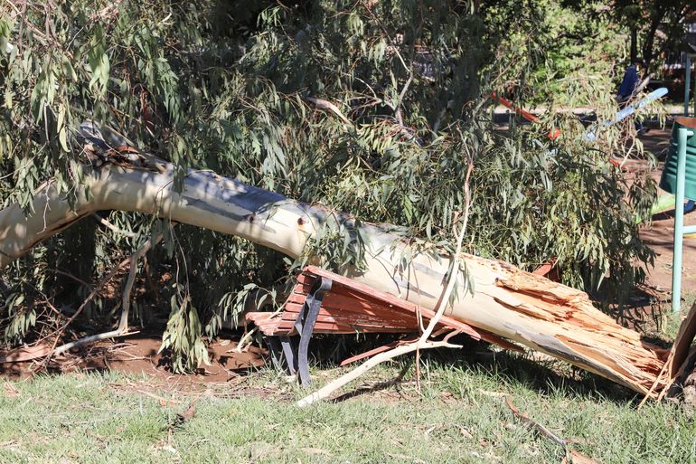 El inusual "ciclón" que afectó durante la noche del martes a gran parte del Alto Valle rionegrino, y principalmente a Cipolletti dejó importantes daños y destrozos en distintos sectores, donde se registraron árboles, postes y techos caídos, como así también cartelería dañada. Varias zonas sufrieron cortes de electricidad y de agua.