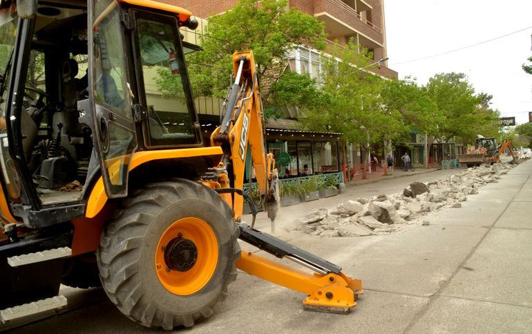 En las primeras horas de la mañana, un equipo de operarios con camiones y maquinaria pesada comenzó las tareas sobre calle Roca. Cerraron el tránsito en la esquina de Roca y España y trabajaron en el aserramiento del pavimento, proceso necesario para llegar al caño a reemplazar. También, se retiró el hormigón para avanzar con las demas tareas.