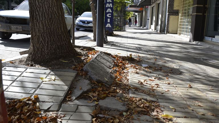 En la misma línea, una comerciante del rubro textil femenino relató situaciones cotidianas: “Veo continuamente cómo la gente se cae. En este caso es un árbol que rompió parte de la vereda y el cordón cuneta. La gente viene y reclama acá, pero no tenemos idea quién es el responsable”.