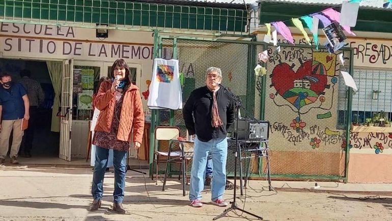 En una pared del patio escolar encontramos esta placa recordatoria de los sucesos acaecidos durante la última Dictadura cívico-militar.