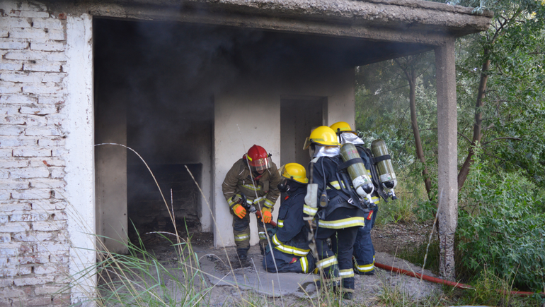 El cuartel de Fernández Oro desplegó una práctica completa con fuego y rescates para formar a sus futuros bomberos. Las mejores imágenes desde adentro.