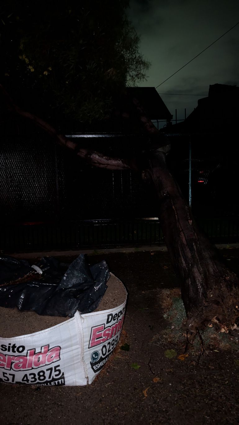 Una serie de relámpagos anticiparon la frenética tormenta que se precipitó sobre buena parte del Alto Valle apenas unos minutos después de las once de la noche. Cipolletti en particular, sufrió notoriamente las consecuencias. Es que, a la considerable cantidad de agua caída en un periodo muy breve de tiempo, se sumaron ráfagas de consideración que tiraron ramas, árboles y postes por toda la ciudad.