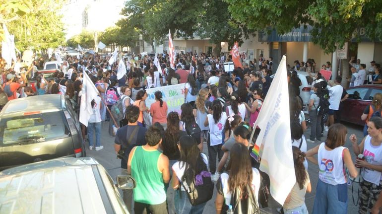 Bajo la consigna “en Educación no sobra nadie” y con decenas de banderas y redoblantes, una numerosa columna de maestras y maestros copó las calles más transitadas de la ciudad y se hizo escuchar con sus gritos de guerra.