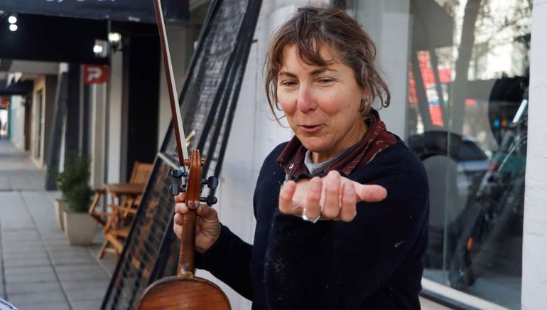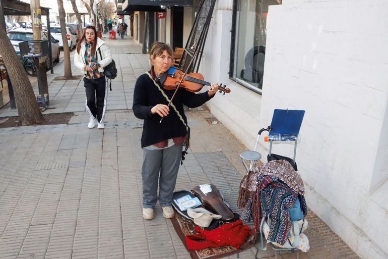 Su presencia y las dulces melodías que brotan de su instrumento sorprendió a los transeúntes y más de uno se detuvo a escucharla, dejarle una retribución que le servirá para continuar camino y hasta cruzar algunas palabras con ella, porque se presta amablemente a contar su particular historia y a compartir los secretos que sabe del violín.