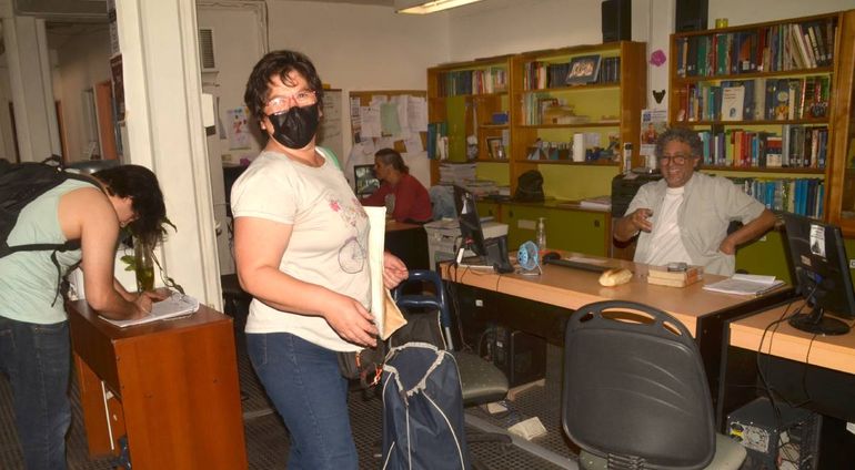 “¿Vos viste si vino la señora de los pancitos rellenos?”, le pregunta una chica a la que ocupa con sus apuntes la mesa de al lado en el sector de estudio de la Biblioteca Bernardino Rivadavia.