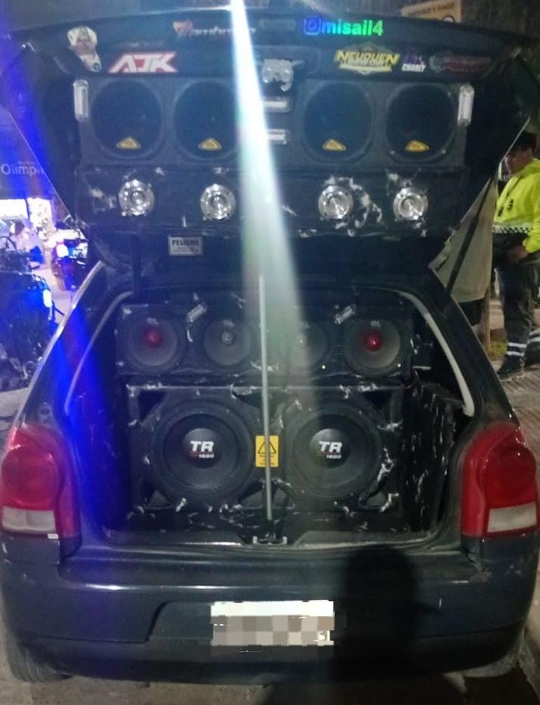 No dejó de sorprender en la verificación de los rodados el potente equipo de sonido de Volkswagen Gol, que exhibía en el baúl una decena de parlantes de distintos tamaños.