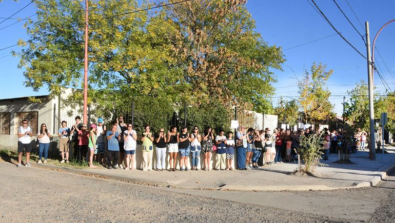 La comunidad educativa de la Escuela Especial N°24 de Cipolletti llevó a cabo un abrazo simbólico en reclamo de mejoras edilicias y condiciones seguras para los estudiantes. La manifestación, realizada fuera del edificio escolar, reunió a padres, alumnos y docentes, quienes continúan exigiendo respuestas concretas del Consejo Provincial de Educación.