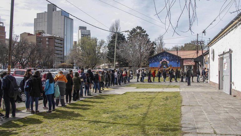 Por el bloqueo de los puentes carreteros que se llevaron adelante organizaciones sociales este miércoles a la mañana, el Tren del Valle no dio abasto y la fila para poder viajar a Cipolletti se extendió por más de una cuadra.