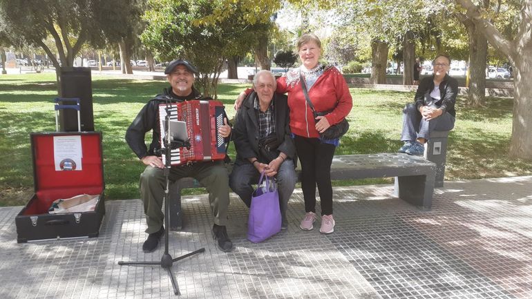 La vecina, que ronda los 70 y reside en el DVN, sorprendió días atrás al acompañar con su voz a Juan Carlos Olatte -JuanK artísticamente-, quien ha adoptado la maravillosa costumbre de tocar su acordeón en la plaza San Martín.