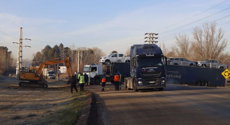 Un camión cargado de flamantes camionetas, comúnmente conocido como “mosquito”, quedó atascado en el primer tramo de la Ruta Nacional 151, por lo que el tránsito vehicular estuvo interrumpido durante más de cinco horas para permitir las maniobras necesarias para liberarlo.