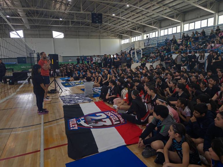 El simpático momento ocurrió en el Polideportivo Municipal en el marco de la inauguración de un torneo de carácter nacional en las categorías sub 12 y sub13. El divertido intercambio quedó registrado por las cámaras de los celulares y comenzó a circular de inmediato por las redes sociales.