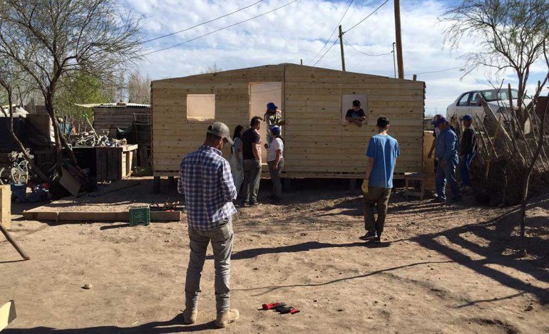 La organización social Techo y unos 70 voluntarios construyeron, con ayuda de los vecinos, ocho viviendas de emergencia en el barrio Martín Fierro. Los trabajos, de nítido carácter solidario, arrancaron la mañana del sábado y concluyeron ayer por la tarde. Alegría y satisfacción entre los participantes y protagonistas de la iniciativa y, por supuesto, en las familias que han sido beneficiadas.