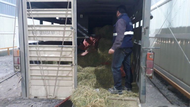 En este caso, el conductor transportaba los alimentos sin la documentación correspondiente y en un transporte que no se encontraba apto para el traslado de sustancias alimenticias, ya que estaban escondida entre fardos de pasto.