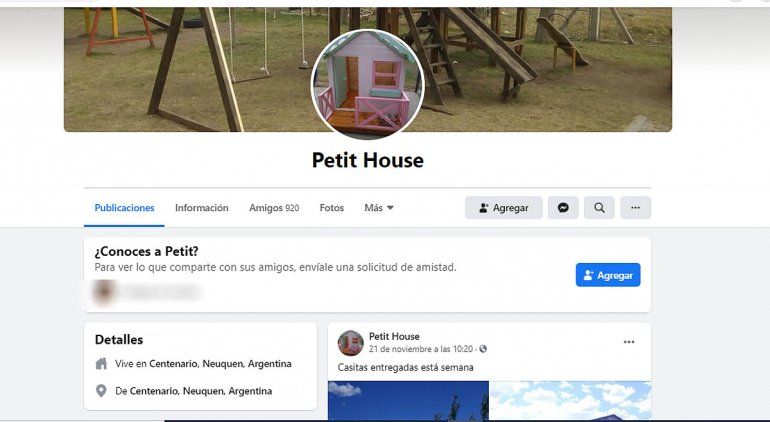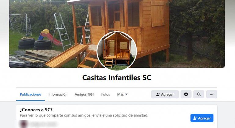 Su perfil en Facebook se llama Casitas FB, y desde allí realiza la publicidad de sus trabajos. Se trata de casitas infantiles de varios modelos y precios, y también mangrullos de juegos para niños. El constructor dice estar ubicado en la ciudad de Centenario, y además del trabajo en madera, la pintura y la instalación, también ofrece el servicio de traslado. Según publica, acepta pagos en efectivos y tarjetas de crédito, y también realiza promociones. Pero sus publicaciones comenzaron a recibir una docena de críticas de los compradores, quienes denuncian que entregaron dinero y nunca les entregó la casita.