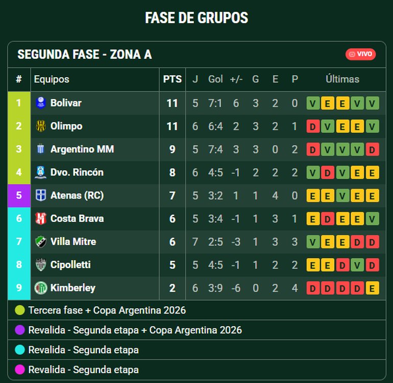 Además de su partido, Cipolletti deberá estar atento a lo que suceda con Atenas y Costa Brava. Los cordobeses están quintos en zona de Copa Argentina con siete puntos y se enfrentan a Olimpo en Bahía Blanca, mientras que los pampeanos sextos con seis y visitarán a Argentino en Monte Maíz.