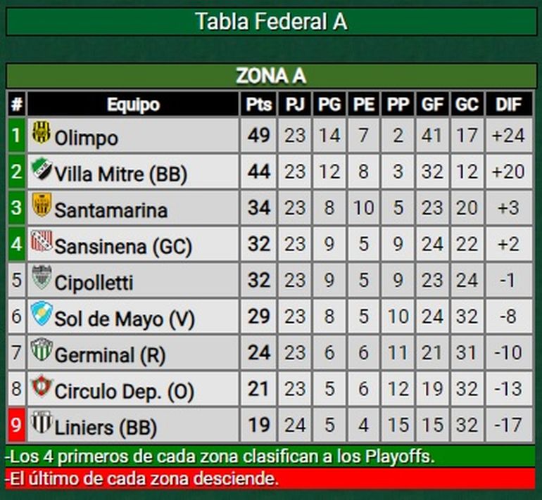 Para Cipolletti el saldo de la fecha fue levemente negativo, ya que sigue en la pelea y la salida de los cuatro primeros es un detalle, teniendo en cuenta que faltan 10 fechas y 9 partidos para cada equipo. Además, los de Darío Bonjour tuvieron un rendimiento interesante y solo les faltó el gol ante Sol de Mayo (29). Tuvo fecha libre Germinal de Rawson (24).