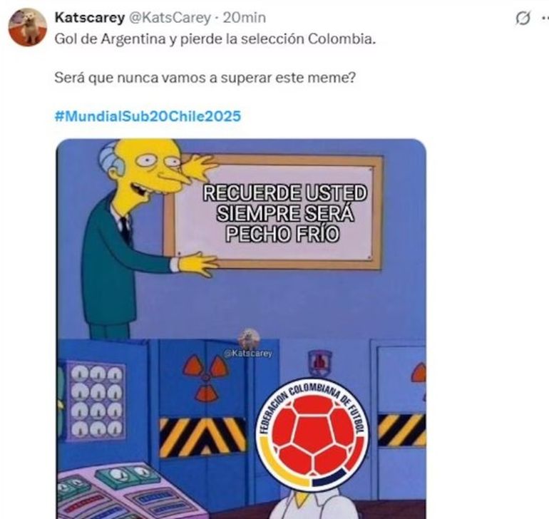 Las redes sociales estallaron luego de la victoria de Argentina sobre Colombia por 1-0, en un partido duro, que le le permitió el pase a la final del mundial sub 20 que se está disputando en Chile. Producto de un contexto picante por la rivalidad entre ambas selecciones y los dichos de futbolistas del combinado cafetero en la previa del encuentro, las redes se inundaron de memes.