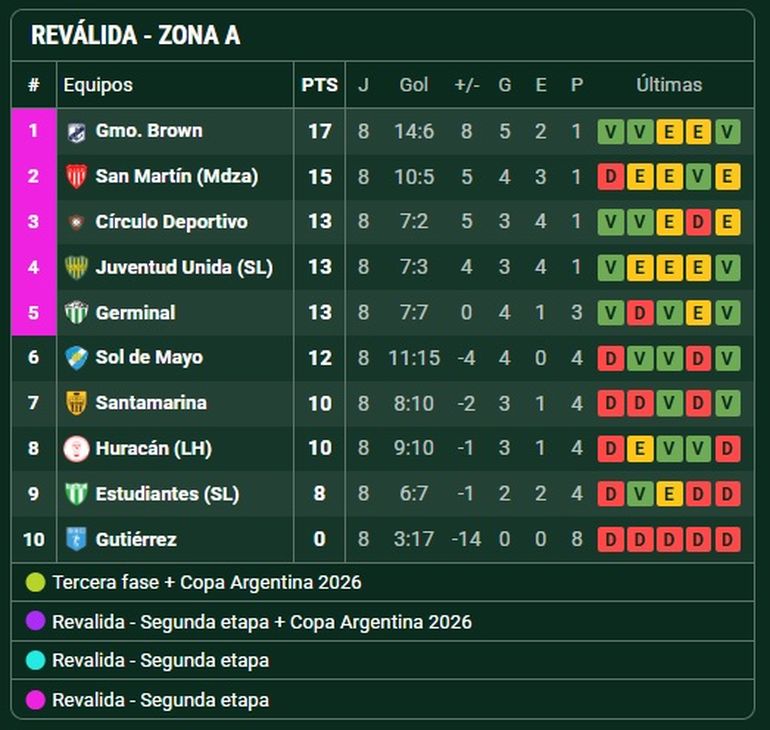 En la zona A de la Reválida, las malas campañas de Sol de Mayo y Germinal son muy evidentes. Ambos sufrieron duras derrotas que los obligan a sumar en la fecha de cierre.
