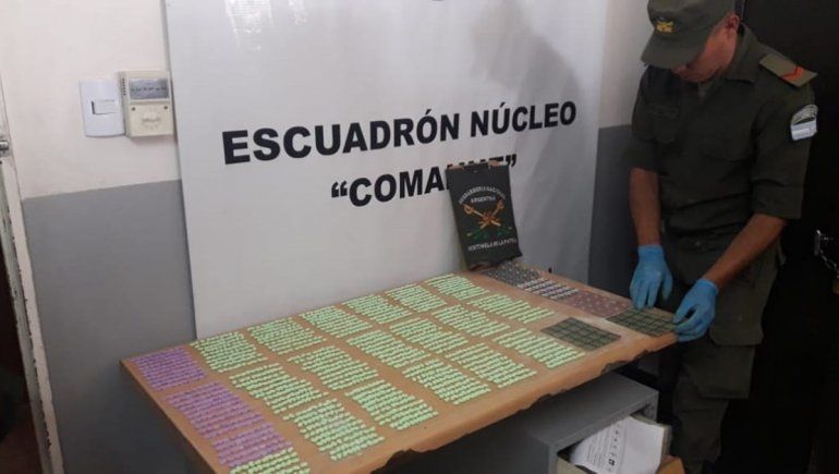 Pocos kilómetros antes de llegar a destino, personal de Gendarmería nacional detuvo al transporte de pasajeros y a través de perros detectores de narcóticos identificaron una mochila de gran tamaño sospechosa. Al abrirla, se encontraron con miles de dosis de droga sintética.