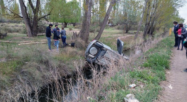 Sólo 12 horas después de ese accidente, a pocos metros del lugar, otro vehículo perdió el control y terminó adentro del mismo desagüe. Ocurrió este sábado al mediodía cuando una mujer que conducía un auto Chevrolet Onix gris habría intentado esquivar un pozo, pero se le fue el rodado y terminó bajo el agua.