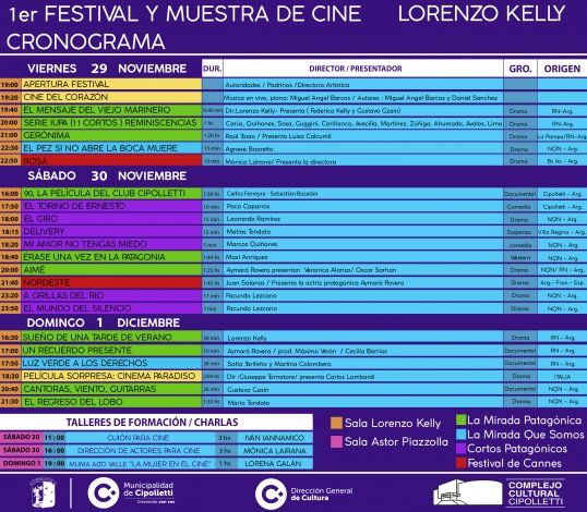 La entrada es libre y gratuita para todas las actividades, entre las que se encuentran la proyección de 23 obras cinematográficas con la presencia de sus realizadores, actores y actrices de Río Negro y Neuquén.