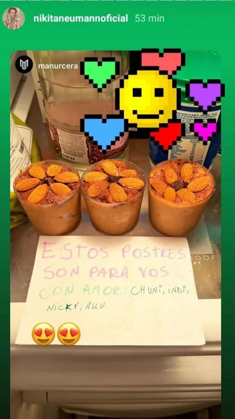 Luego de que Manu Urcera regresara a la casa de Nicole, tras una carrera en Bahía Blanca, y Nicole junto a sus hijas, Allegra, Indiana y Sienna, le prepararon un postre y adornaron una de las puertas de la casa para darle la bienvenida al corredor.