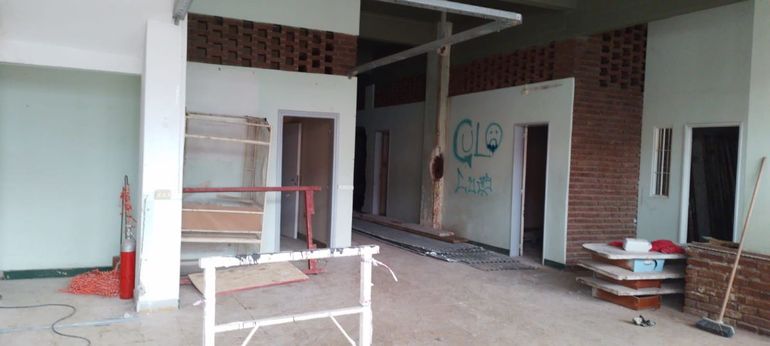 Actualmente una cuadrilla de obreros retira del lugar viejas aberturas, sanitarios y todo lo que no contempla el nuevo proyecto. El edificio, que es uno de los más emblemáticos de Allen, fue adquirido antes de la pandemia por la familia Mamberti, un tiempo después del cierre definitivo de la institución de salud que funcionó allí durante largos años: la Clínica Santa Catalina.