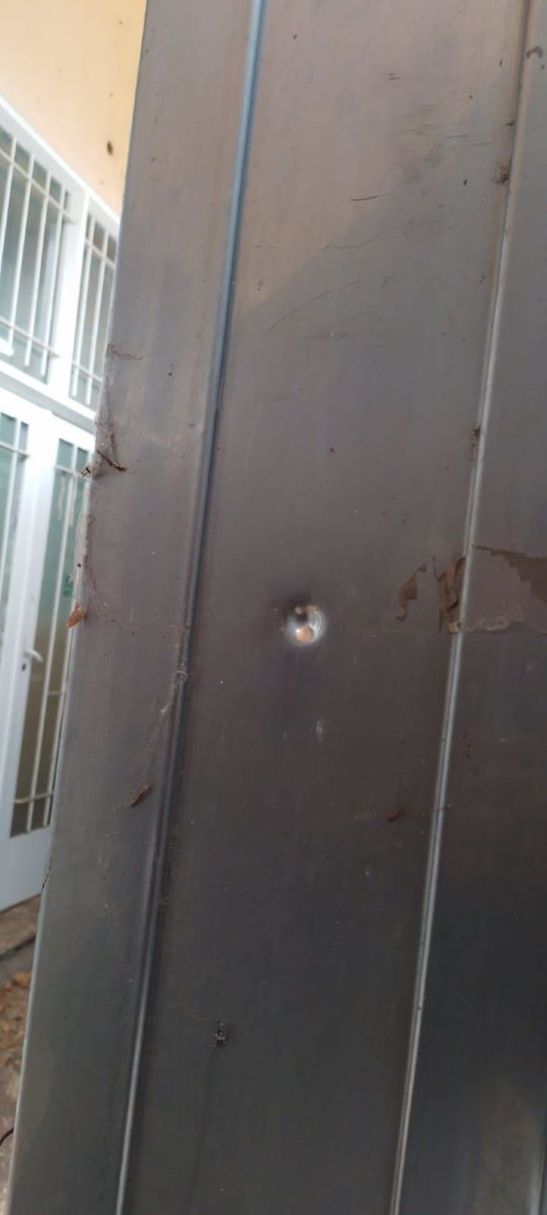 Tras el disparo los hombres de “El Cholo” desataron una balacera incesante contra Santiago, que escapó corriendo por el centro de la ciudad. Una de esas balas impactó en una de las columnas del hotel, revestidas en acero, y aún la marca persiste en el lugar como una huella que recuerda ese hecho policial.