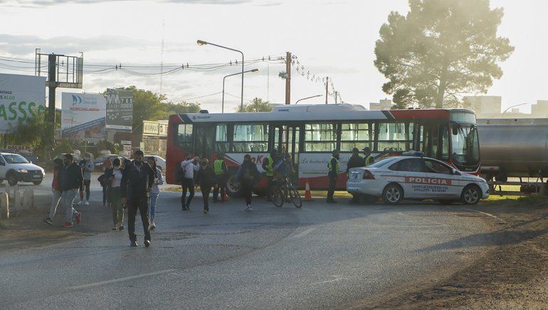 Los choferes se aproximan hasta donde les permite el operativo de tránsito. En el lado cipoleño los colectivos llegaban hasta la rotonda, estacionaban y descendían los pasajeros. En grupos, caminan todos juntos hasta cruzar al lado neuquino donde los esperan para hacer el trasbordo. En medio de esa travesía debieron esquivar neumáticos ardiendo, y dos intensas nubes de humo; una de las cubiertas quemadas y otra de la zona donde asaron los chorizos para el almuerzo.