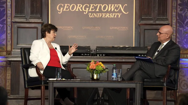 “Todas las economías más grandes del mundo se están desacelerando”, la presidenta del FMI al exponer este jueves en la Universidad de Georgetown. Y resaltó que los “altos precios de la energía y los alimentos, condiciones financieras más estrictas y restricciones de suministro persistentes tienen un impacto aún mayor en los países emergentes y en desarrollo “ya que se enfrentan a una menor demanda de sus productos”.