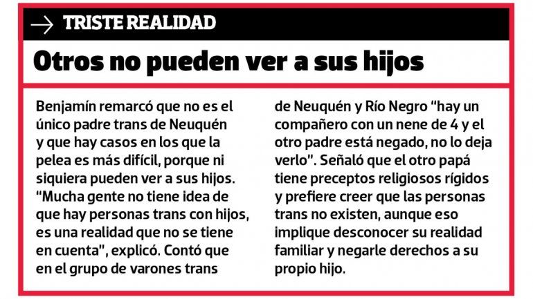 Benjamín dijo que no conoce a padres o madres trans en Argentina que hayan logrado el cambio de documentación para sus familiares, pero no bajará los brazos hasta cambiar esa realidad. “Cada vez somos más las personas trans que tenemos hijos, así que esta también la vamos a ganar”, aseguró.