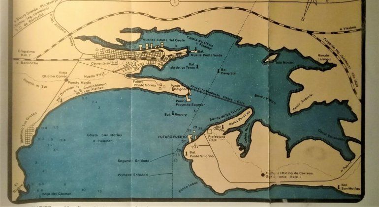 Luego agrega: “Y también aparecerán muelles y dársenas en Punta Delgado, tal cual lo había previsto SOGREAH, uniéndose con Punta Villarino, formado un gran complejo portuario de aguas profundas, equipados con toda su infraestructura de apoyo y con frigoríficos de importancia”.
