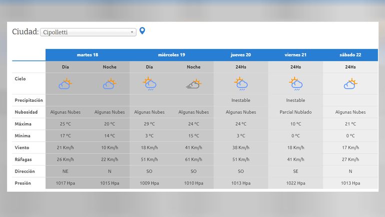 El tiempo en Cipolletti: fin de semana con nubes, frío y viento